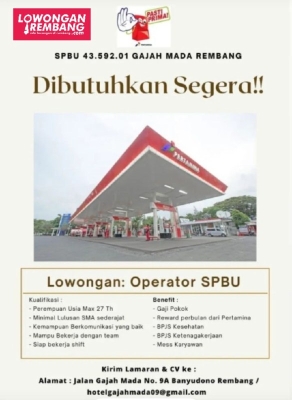 - Email : lowonganrembang@gmail.com